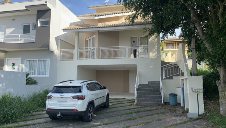 Sobrado, possuindo 3 dormitórios sendo 1 suíte, no condomínio Aruã, possuindo sala de estar, Sala de visitas, sala de jantar, cozinha com armários e fogão, área de serviço, despensa, lavanderia, banheiro social, garagem para 4 carros, com área construída de 230m2, terreno com 300m2, quintal grande, condomínio com: segurança 24 horas com ronda automotiva, quadra de tênis, campo de futebol, pista de skate, academia, pista de cooper, lago, playground, academia ar livre, clube, quadra de voolei, Localizado á 40min de São Paulo Capital. Aruã, Mogi das Cruzes – SP.